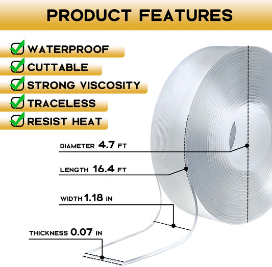 FOOLOSO Double Sided Tape Heavy Duty (1.18 Inches, 16.4 FT)